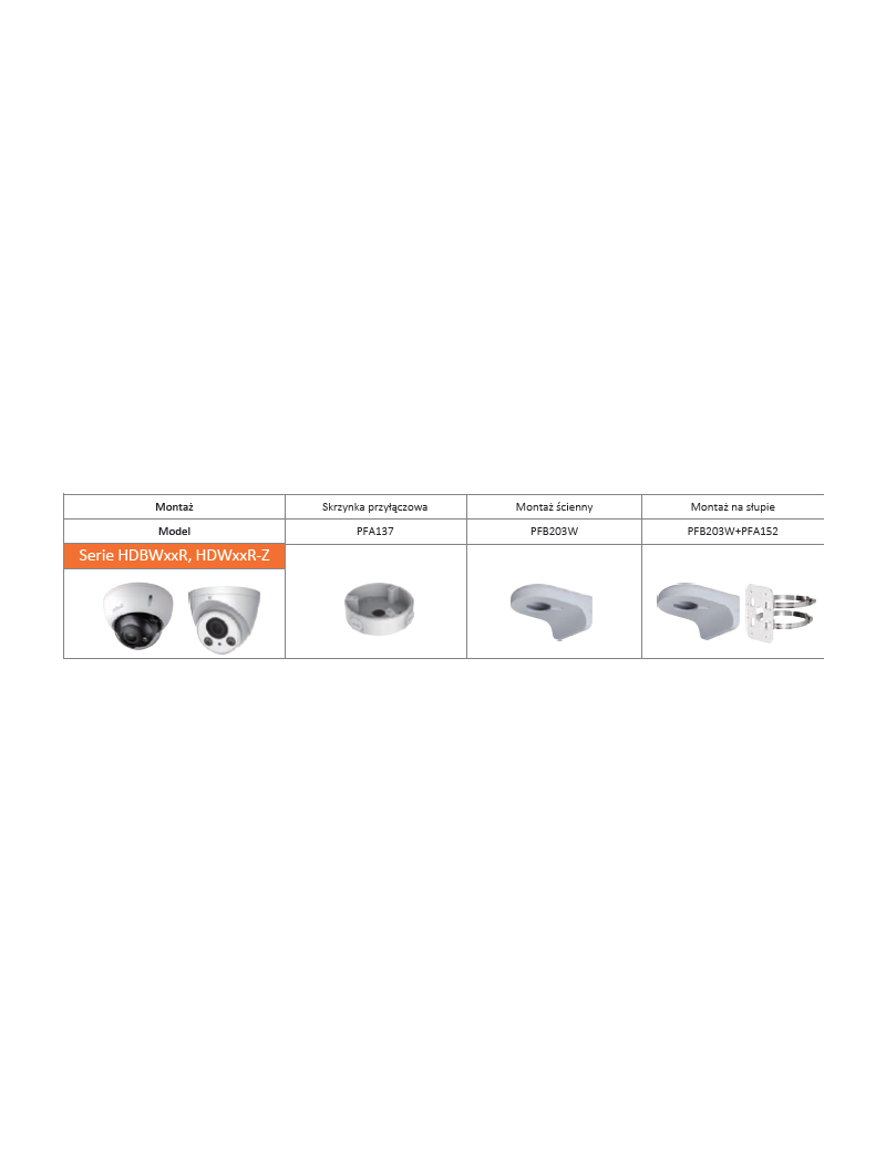 • Zastosowanie uchwytu: Kamera kopułkowa